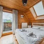 Do dyspozycji Gości domku alpejskiego są patio i balkon oraz takie udogodnienia multimedialne jak szybki internet i TV. We wnętrzu znajdują się sofa, a także kominek. Wyposażenie łazienek obejmuje oddzielną toaletę, wannę i prysznic, suszarkę do włosów i ręczniki.